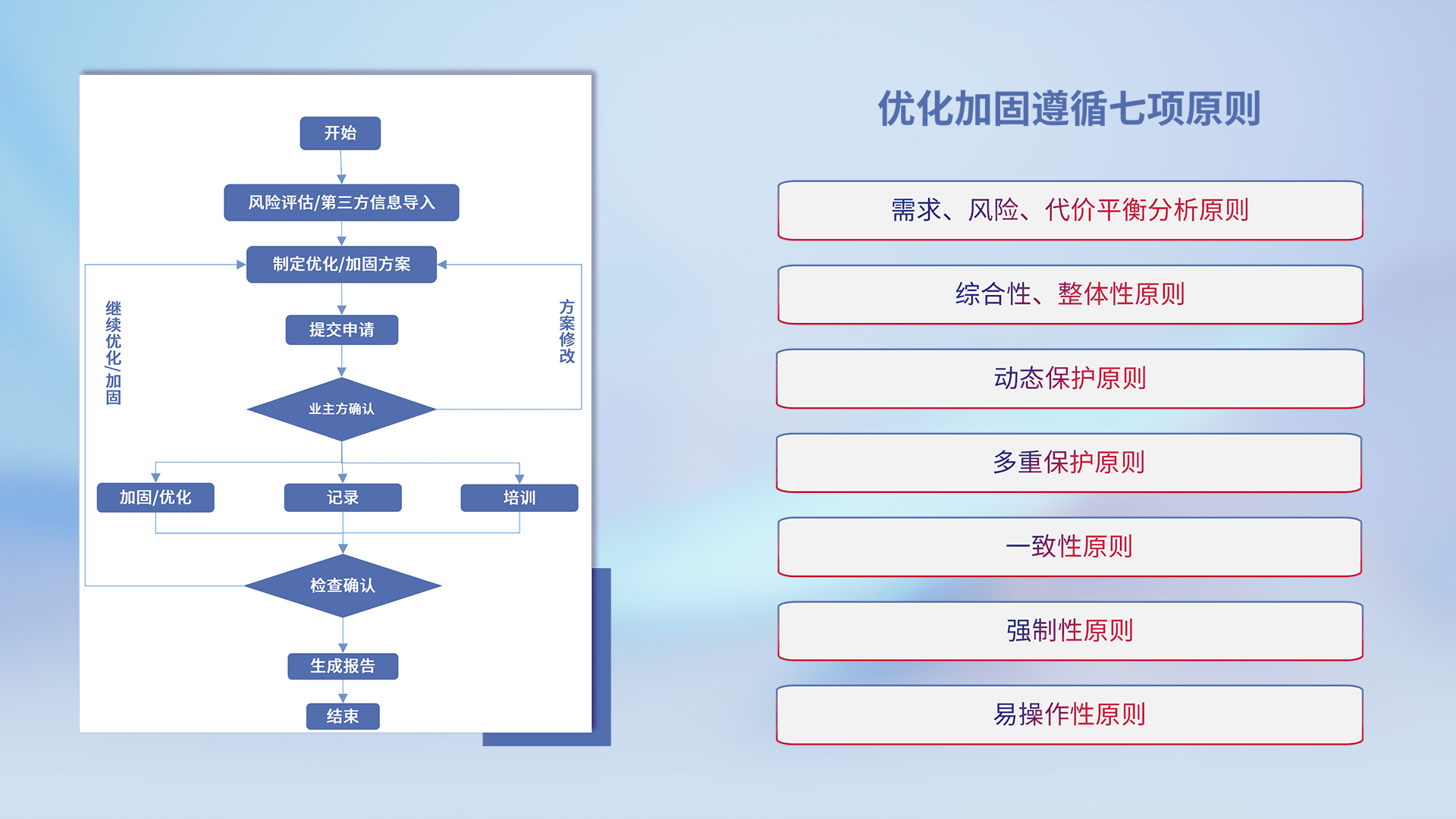 最大程度利用现有资产,,,对评估发现的问题进行封堵与整改,,,防止漏洞被利用,,,,提升整体网络安全性,,为客户带来高标准的优化加固服务。。。。